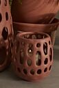 Create a dreamy outdoor space with the lightweight terracotta Alameda Lantern, featuring organic handmade cutouts. Place a citronella or pillar candle inside to ward off bugs & set the mood. Layer multiple sizes together for a cozy, dimensional glow.