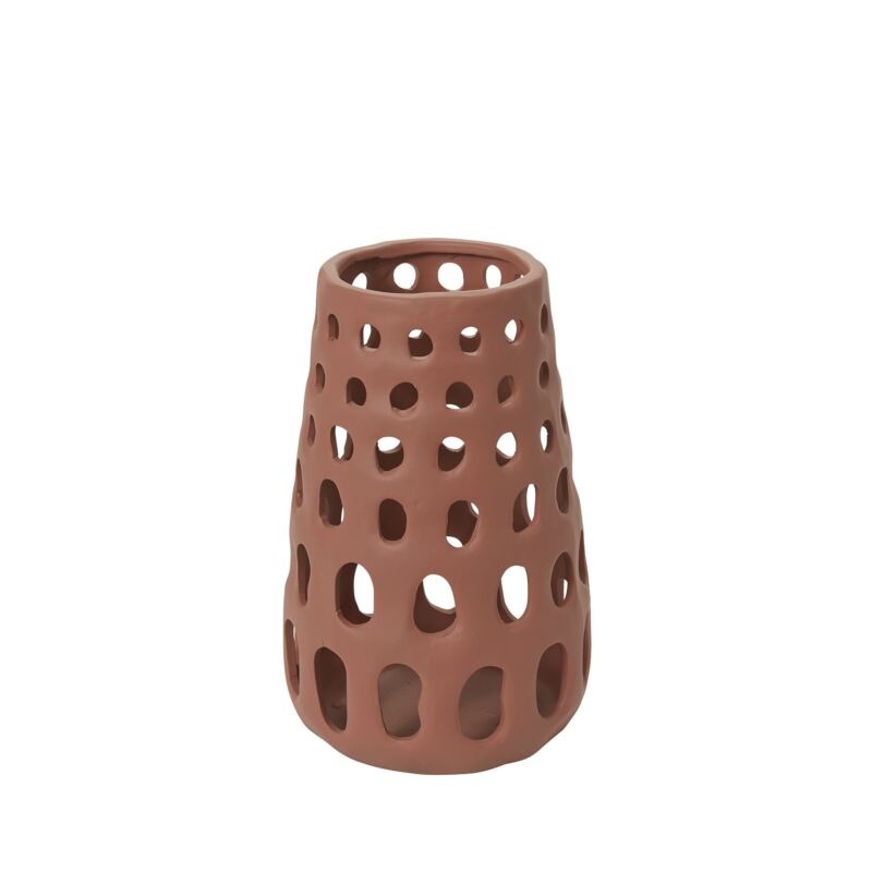 Create a dreamy outdoor space with the lightweight terracotta Alameda Lantern, featuring organic handmade cutouts. Place a citronella or pillar candle inside to ward off bugs & set the mood. Layer multiple sizes together for a cozy, dimensional glow.