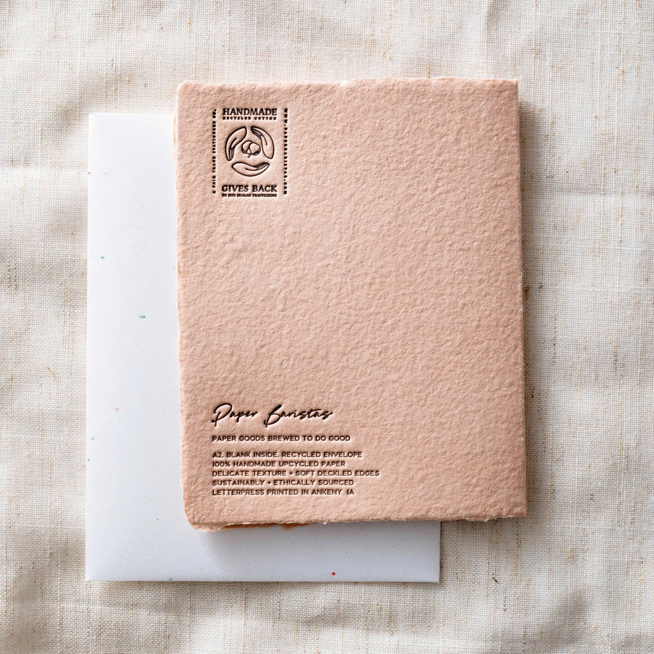 Beautiful paper. Made by beautiful people. For a beautiful cause. Our handmade deckled edge paper collection is letterpress printed in-house late at night with lots of coffee. This card is meant to be treasured for years to come. Handmade paper beautiful enough to frame and helps us ensure there was no slave labor in our supply chain. 10% goes to fight for human rights in the supply chain. Saying: The Lord bless you and keep you; The Lord make his face shine on you and be gracious to you; The Lord turn his face toward you and give you peace. Number 6:24-26 FOLDED CARD 8.5"W x 5.5"L