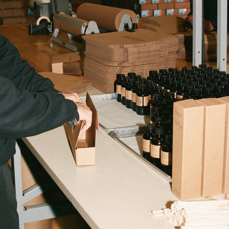 Each diffuser contains a 3.5 fl oz blend of naturally-derived and man-made fragrance oils in a 4 oz amber apothecary-inspired bottle