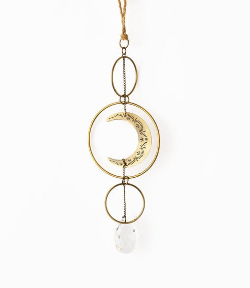 Catch the beautiful hues of sun rays through windows or on a patio or balcony with our Surya Crescent Moon Brass Suncatcher. Surya means sun in Hindi and the celestial design is timeless, yet trendy. Display in a home window, on a patio, balcony or tree in the yard or make it a gift to someone who would appreciate the symbolism and some sunshine in their life!